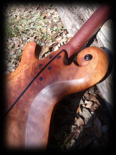 Nobody will ever ask you which superstore wall you pulled this off of. Entirely hand crafted, with a little help from my friends, from my hands and creative inspiration to yours. I see them as electric solid jazz guitars like Kevin Eubanks’ Abe Riveras or Lenny Breau’s Kirk Sand… with a little Doug Irwin seasoning, and influences from rural Texas woodcraft and classic automotive curves and temples of India to grandfather clock tops, silverware handles, Art Deco and a little Nouveau, Southwestern Native American art, old architecture, and antique carved furniture. Somehow I work it all in together into these; and there’s little more fun to me than designing such playable art and bringing it to life to help create music that can be offered or shared.